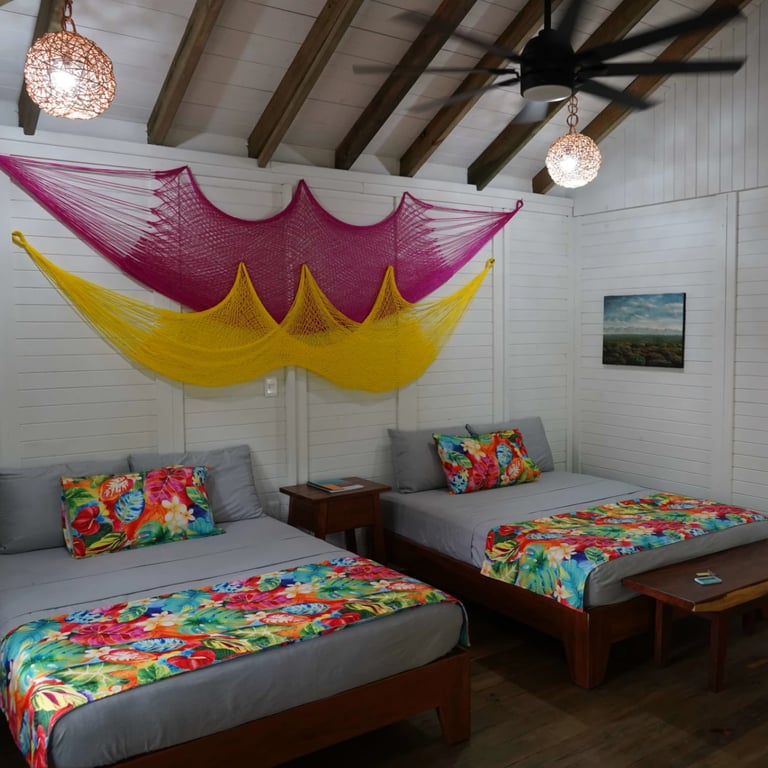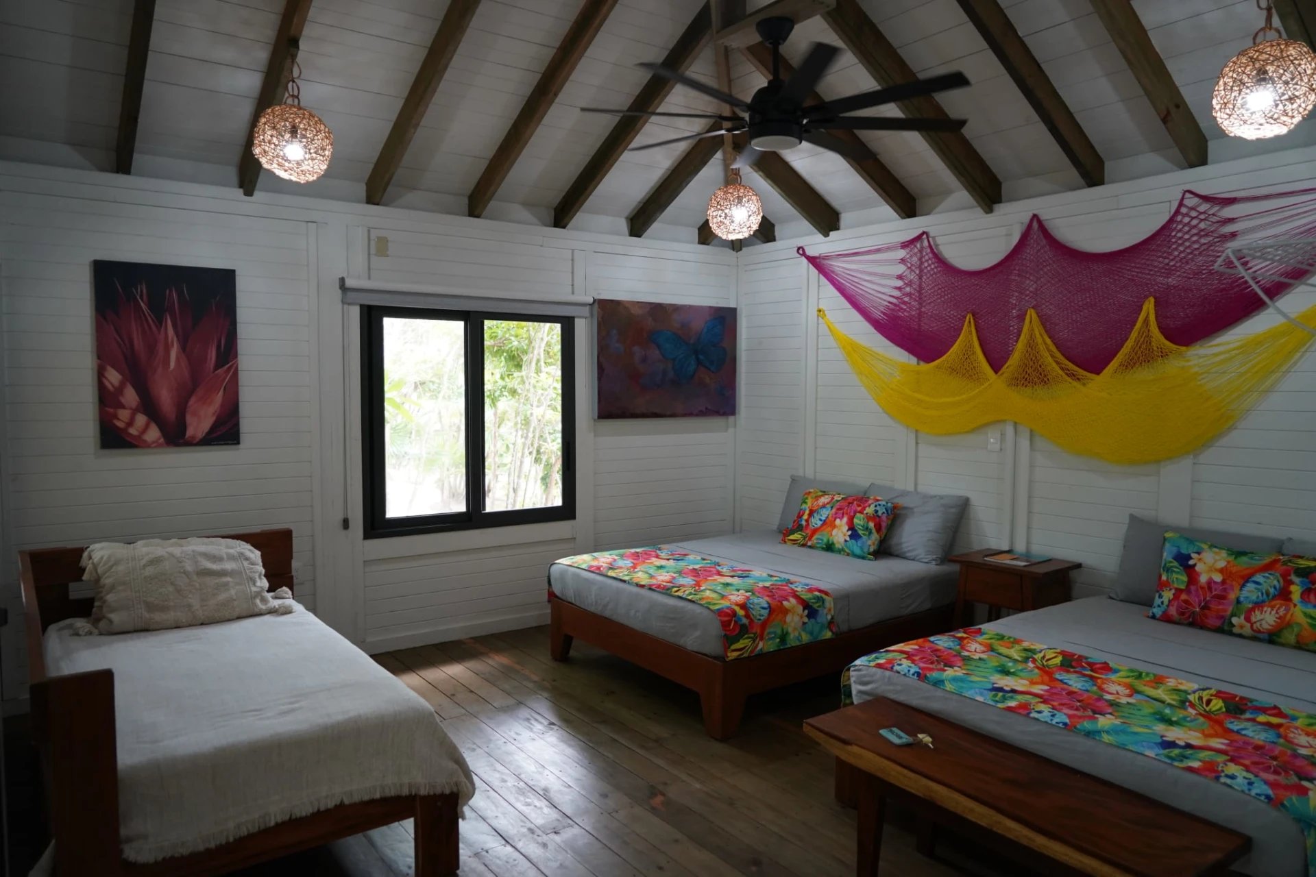 2 Camas queen-size⎮1 Sofá cama individual⎮Baño completo, con ingreso extra a la regadera⎮Terraza amplia con hamaca y sala exterior⎮Soportes para cañas de pesca y equipo, con manguera para su limpieza.